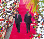 | 3月26日,南非总统祖马在比勒陀利亚联邦大厦前广场举行仪式,欢迎中国国家主席习近平访问南非。这是习近平和夫人彭丽媛同祖马和夫人一起步入广场。 |