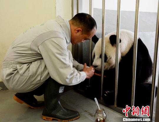 饲养专家董礼为“圆圆”采初乳。 台动宣 摄