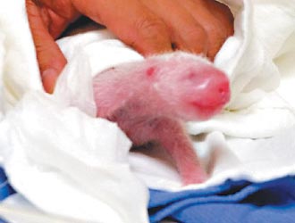 熊猫幼崽在保温箱里接受人工照料。联合报图