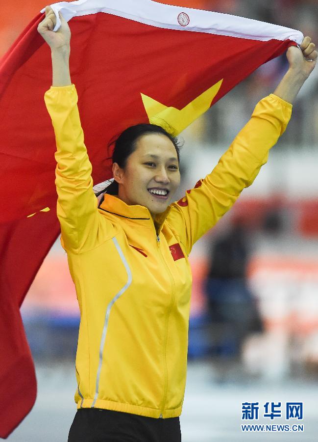 2月13日,中国选手张虹庆祝胜利。当日,在2014年索契冬奥会速度滑冰女子1000米比赛中,中国选手张虹以1分14秒02的成绩夺得冠军。新华社记者王昊飞摄