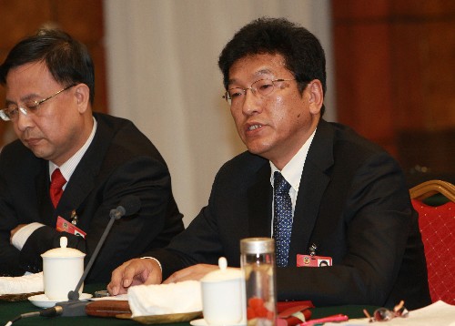 2009年3月4日,来自西藏的全国政协委员阿沛·晋源(右)说,要以科学发展观为统领,促进西藏社会和谐稳定、民族团结和各项事业发展。 新华社记者 庞兴雷 摄