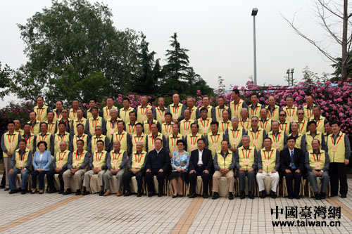 全国政协原副主席白立忱、中华海外联谊会副会长林智敏、解放军原副总参谋长熊光楷等与两岸将军合影留念。(中国台湾网 张洁 摄)