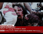 | 这是10月23日在利比亚班加西拍摄的卡扎菲的死亡报告。当日,利比亚执政当局司法部门出具了卡扎菲及其五子穆塔西姆的死亡报告,称头部和腹部中弹是导致卡扎菲死亡的原因。 |