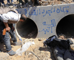 | 民众一度排长队参观曾安置于米苏拉塔的卡扎菲遗体 10月24日,利比亚境内卡扎菲家乡苏尔特一处油库发生爆炸。利比亚执政当局官员25日对外透露,卡扎菲的遗体已于当日被秘密埋葬在撒哈拉沙漠一个不为人知的地方。 |