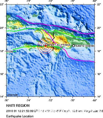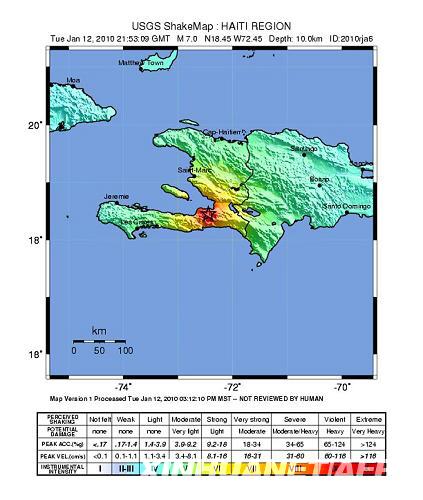 美国地质勘探局先前初步测定地震级别为7.3级,震中位于距海地首都太子港16公里处,震源深度为10公里。地震不久后又连续发生两次余震,分别为里氏5.9和5.5级。多米尼加震感明显,建筑物发生剧烈摇晃。