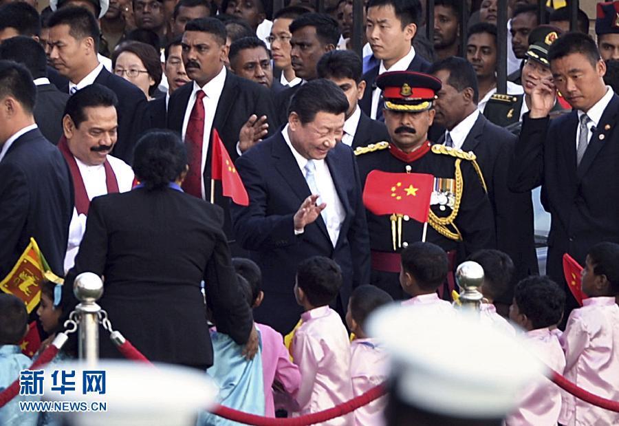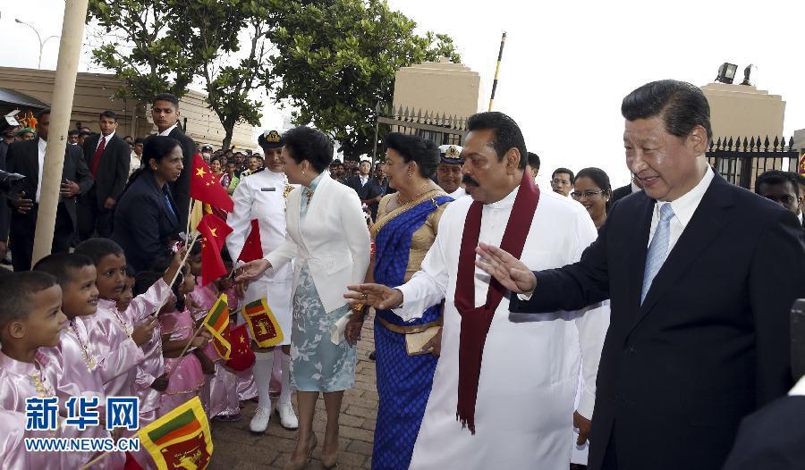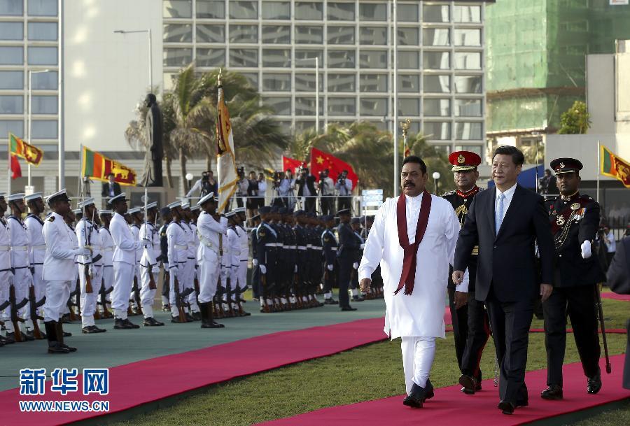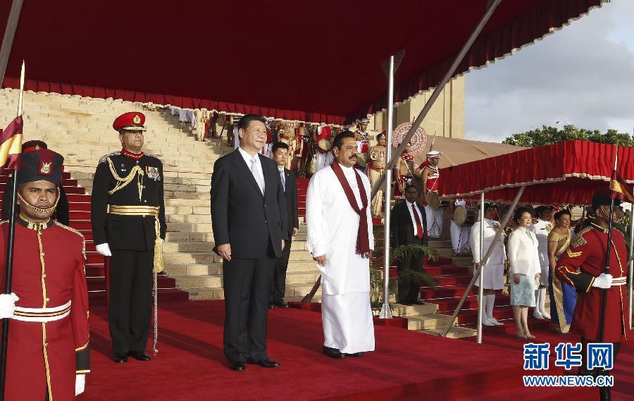 斯里兰卡总统拉贾帕克萨为习近平举行盛大欢迎仪式