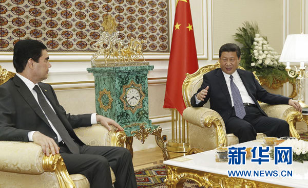 习近平表示,中土友谊有着深厚的历史文化基础。近年来,两国政治上高度互信,经贸、能源、人文领域合作成果丰硕,中国成为土库曼斯坦第一大贸易伙伴。双方互为最大的天然气合作伙伴,为两国经济发展发挥了重要作用,也为世界能源合作树立了良好典范。中土是真正意义上的战略伙伴。中国将坚定不移奉行对土友好合作政策,永远做土库曼斯坦的好朋友、好伙伴、好兄弟。