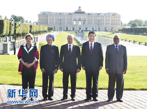 国家主席习近平5日在圣彼得堡出席金砖国家领导人非正式会晤,同巴西总统罗塞夫、俄罗斯总统普京、印度总理辛格、南非总统祖马就金砖国家合作以及重大国际和地区问题交换意见、协调立场。习近平强调,面对各种风险和挑战,金砖国家要凝聚在重大问题上的共识,加强团结合作。