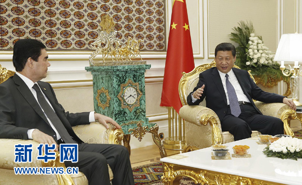9月3日,中国国家主席习近平在阿什哈巴德同土库曼斯坦总统别尔德穆哈梅多夫举行会谈。 新华社记者鞠鹏摄