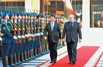5月10日,国家主席习近平在明斯克出席白俄罗斯总统卢卡申科举行的欢迎仪式。