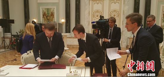 当签字仪式开始时,已是傍晚时分。在富丽堂皇的独立宫二层授勋厅内,有趣的一幕出现了。
