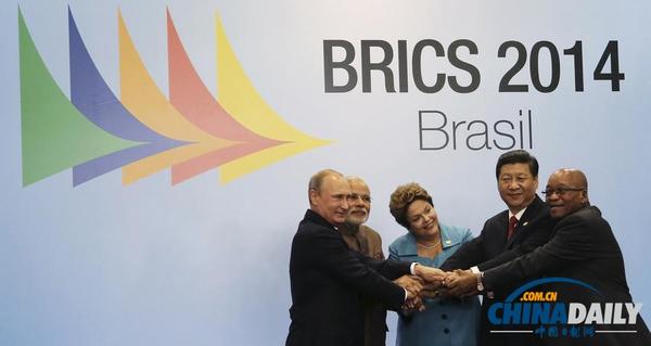 中国日报巴西福塔莱萨7月15日电(记者 吴姣) 当地时间7月15日,金砖国家领导人第六次会晤在巴西福塔莱萨举行。中国国家主席习近平、巴西总统罗塞芙、俄罗斯总统普京、印度总理莫迪、南非总统祖马出席。5国领导人围绕“实现包容性增长的可持续解决方案”主题,就当前世界经济形势、国际政治安全问题交换意见,达成广泛共识,取得重要成果。