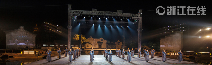 与大都市匆忙圈禁的舞台不同,乌镇的剧场在水上,在露天,在飞檐木梁,在街头,也在在楼上楼下手绢横飞的梨园旧景。