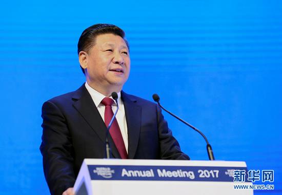 2017年1月17日,国家主席习近平在瑞士达沃斯国际会议中心出席世界经济论坛2017年年会开幕式,并发表题为《共担时代责任共促全球发展》的主旨演讲。(图片来源:新华社)