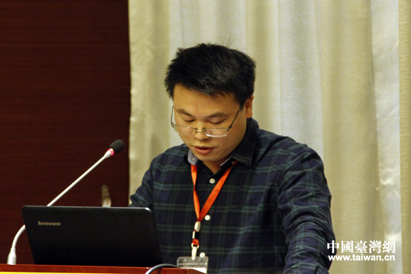海南台湾研究会研究部副主任邬恒利在论坛发言。(中国台湾网记者 李杰 摄)