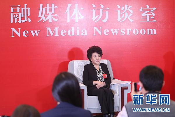 十九大新闻中心举行媒体见面会,邀请十九大代表、国务院侨务办公室主任裘援平接受媒体采访。新华网 郝广鹏摄