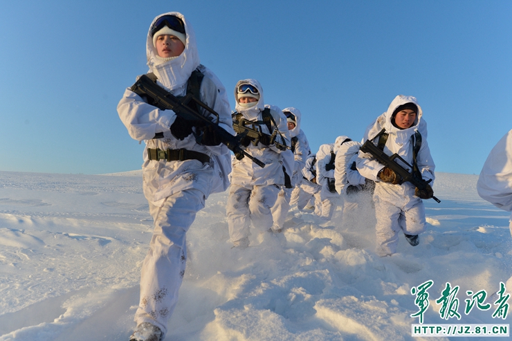 2014年10月,在东北某森林腹地,特战官兵进行了技战术综合演练,三天两夜的时间,参训官兵们翻高山、跨冰河、住冰窟,睡雪洞;2015年开春,寒风凛冽、积雪过膝,从旅长到班长、从政委到支委,从男兵到女兵,在-30℃的雪原中摸爬滚打、攻坚夺隘……这支英勇威猛的特战劲旅作为决胜战场的作战力量,正在改革强军征途中枕戈待旦,直等一声令下,用忠诚和血性在使命的图腾上挥写荣光。