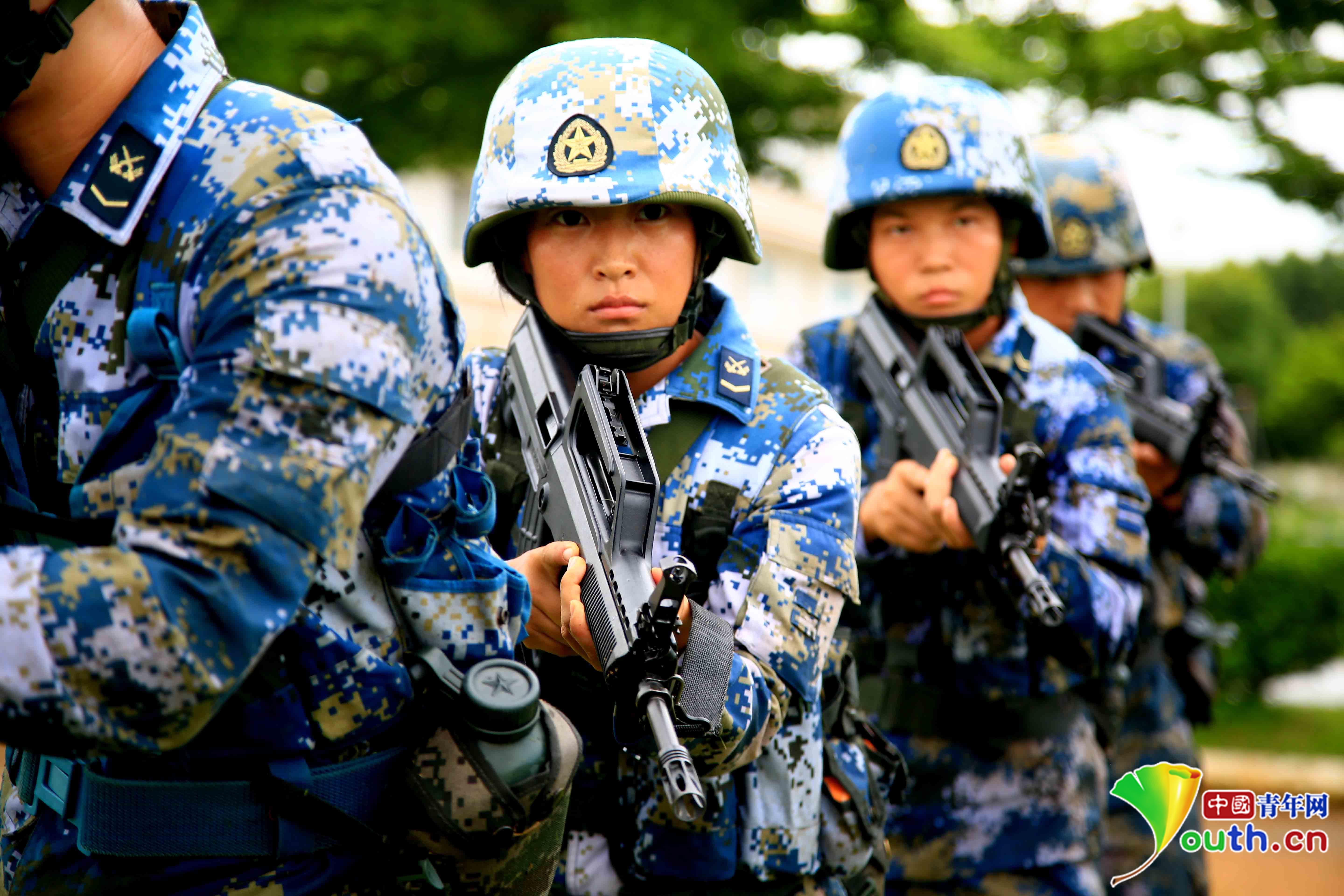 并没有因为是女兵,就能够在海军陆战队中得到额外的关照。“她们的训练是和我们完全一样的。”一位海军陆战队的男兵班长告诉中国青年网记者。在特种射击的训练中,苏布达与其他战士表现出了同样高水平的军事素养。令人眼花缭乱的战术动作中,苏布达熟练的行进、掩护、射击。“两栖霸王花”的称号就是这样从一次次的摸爬滚打中声名远扬。