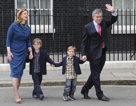 布朗的两个儿子约翰和弗雷泽也首次与父母一同出现在媒体面前。布朗在宣布完自己的决定后跟家人一起乘车前往白金汉宫向女王正式递交辞呈。有目击者称布朗一家已经开始收在拾行李,有货车出现首相府的后街。