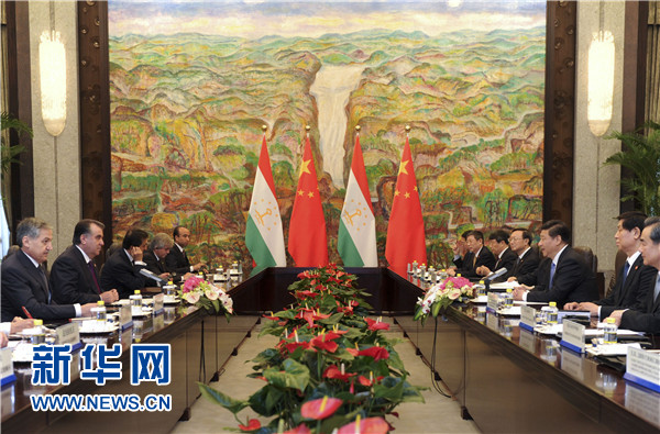 5月19日,中国国家主席习近平在上海会见塔吉克斯坦总统拉赫蒙。新华社记者 张铎 摄