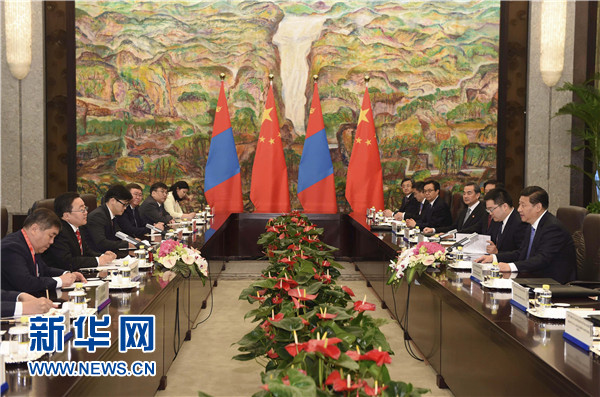 额勒贝格道尔吉表示,习近平主席提出的“亲、诚、惠、容”周边外交理念为蒙中关系和区域合作提供了重要指引和机遇。蒙方决心同中方一道,使蒙中关系成为本地区国家关系的典范。我邀请习近平主席尽早对蒙古国进行国事访问。蒙方感谢中方充分照顾蒙方利益,将在涉台、涉藏等问题上继续坚定支持中方。蒙方愿落实好双方达成的各项共识和协议,加强矿产、电力、基础设施建设等领域合作。蒙方希望在国际和地区事务中同中方加强沟通和协调,支持亚信上海峰会取得成功。