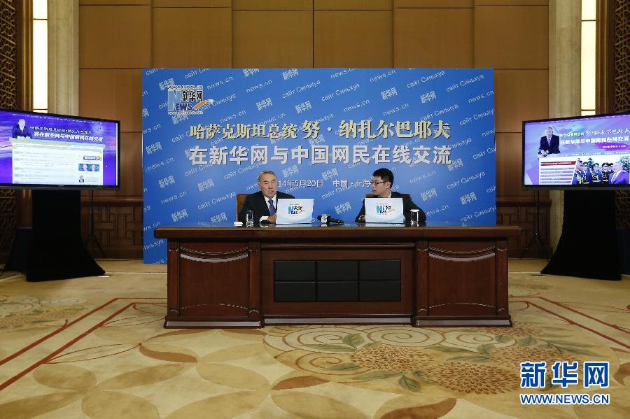 5月20日,正在中国访问并出席在上海举行的亚洲相互协作与信任措施会议第四次峰会的哈萨克斯坦共和国总统努尔苏丹·纳扎尔巴耶夫通过新华网与中国网民在线交流互动,回答了亚信发展、哈中关系、两国经贸、文化交流、能源合作等问题。新华社记者 张玉薇 摄