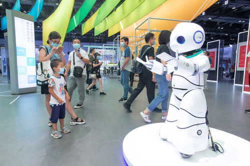 观众在2020年中国国际服务贸易交易会上观看一款智能机器人(9月8日摄)。新华社记者 徐金泉 摄