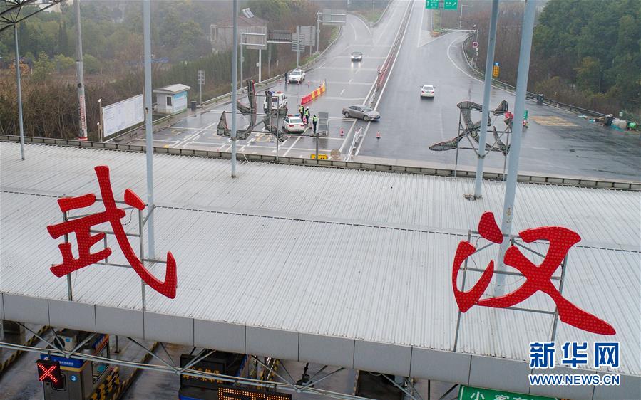 武汉北高速公路收费站出城通道已封闭(1月23日摄)。 新华社记者肖艺九摄