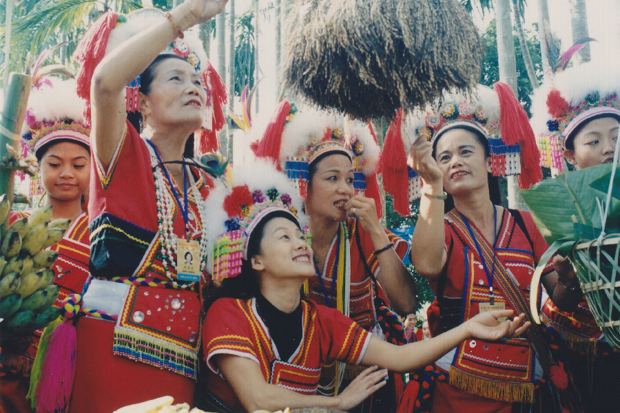 2003年台湾高山族同胞在保亭槟榔园交流。(唐小平摄)