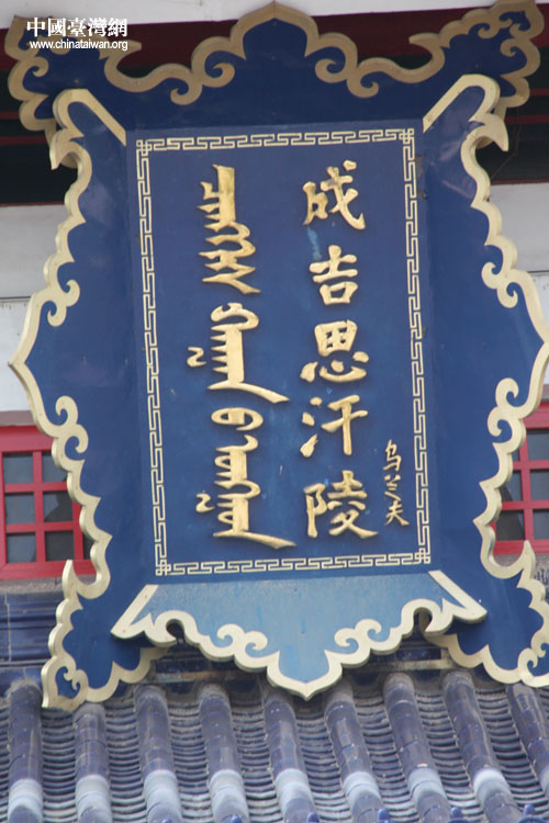 乌兰夫题写的成吉思汗陵五个大字(中国台湾网 王文英 摄)