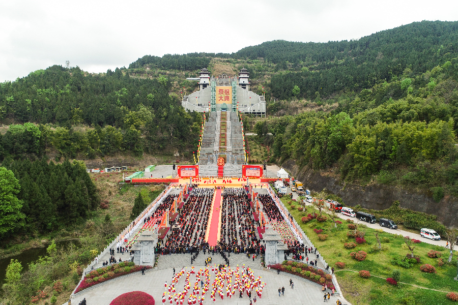 第五届海峡两岸嫘祖文化交流活动祭祖现场。