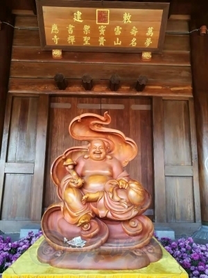 布袋和尚整日袒胸露腹、笑口常开,而且幽默风趣、聪明智慧、与人为善、乐观包容,深受人们的尊敬和爱戴。这个和尚早年在奉化岳林寺出家,最爱游化雪窦,雪窦由此被尊为弥勒圣地。