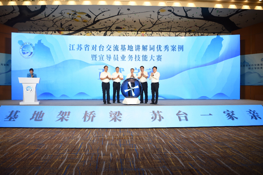 交汇点讯 8月17日至19日,江苏省对台交流基地讲解词优秀案例暨宣导员业务技能大赛在常州溧阳举办。来自全省对台交流基地的20多位选手参加比赛,共同展示江苏对台交流基地的风采。国台办交流局局长黄文涛,江苏省人民政府原副省长、江苏省旅游协会会长张卫国,以及浙江、福建、山东、湖北、广东省台办代表等参加活动。