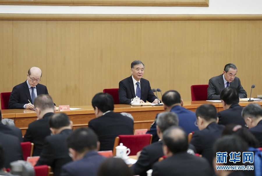 1月19日,2020年对台工作会议在北京举行。中共中央政治局常委、全国政协主席汪洋出席会议并讲话。 (图片来源:新华网)