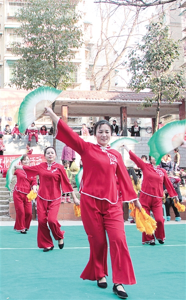 贵州省贵阳市花溪区中曹司居委会的文艺爱好者表演舞蹈《欢聚一堂》。本报记者 吴秉泽摄