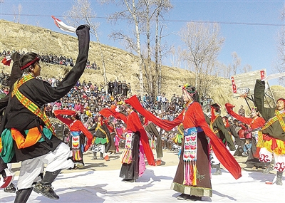 青海西宁市湟中县共和镇尕庄村演出现场。 本报记者 马玉宏摄