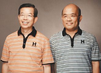 “谢苏配”的定妆照。左为谢长廷,右为苏贞昌。 来源:台湾《联合报》
