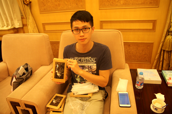 在中山公园音乐堂实习的台湾学生为同伴精心准备了礼物。(记者 陈文韬摄)