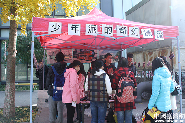 北京师范大学两岸四地青年交流协会的学生们早早地来到体育馆外布置摊位,他们为两岸四地青年交流所做的努力,如同阳光在这个寒冷的初冬让人感到温暖。