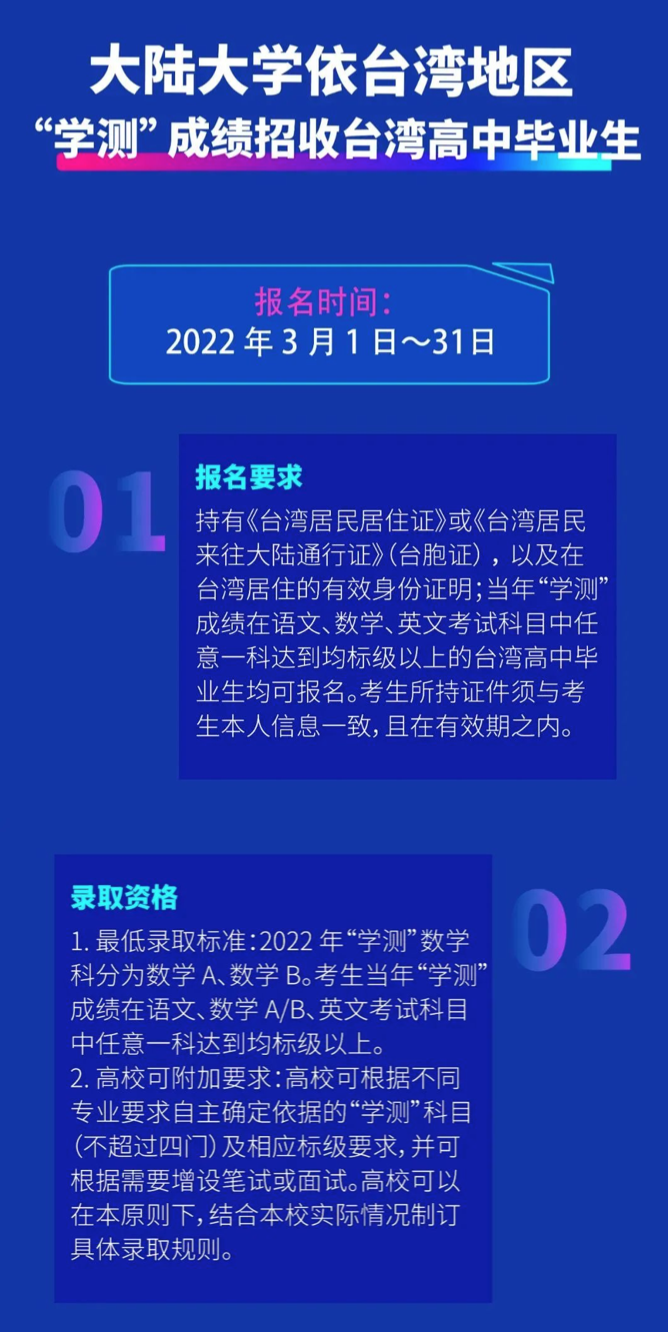 从“祖国大陆高校面向港澳台招生信息网”获悉,四川10所具有免试招收台湾考生资格的院校(四川大学、西南交通大学、电子科技大学、四川农业大学、成都中医药大学、四川师范大学、西南财经大学、成都体育学院、四川音乐学院和西南民族大学)已陆续发布招收台湾学生简章。