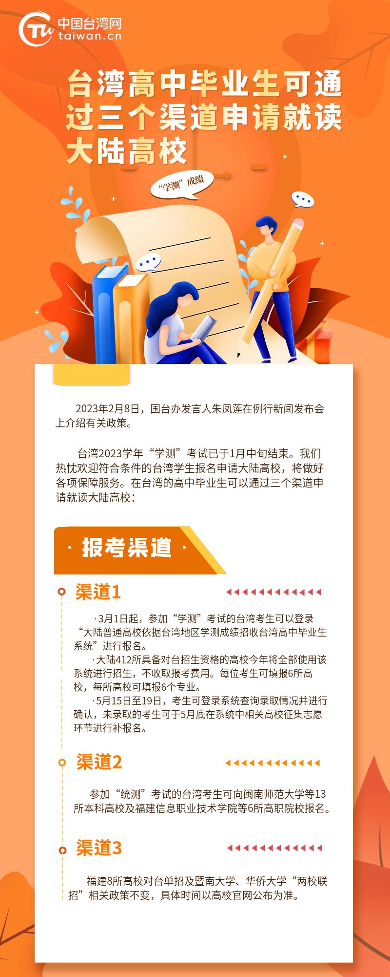 台湾高中毕业生可通过三个渠道申请就读大陆高校