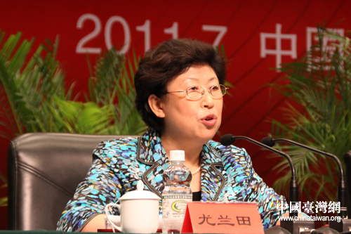 中央统战部副部长、中国和平统一促进会秘书长尤兰田主持本次海外统促会会长会议开幕式。(中国台湾网 徐维彬 摄)