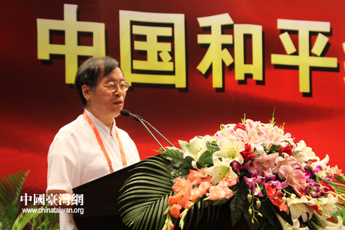 台湾中华基金会名誉理事长王津平在大会上发言。(中国台湾网 徐维彬 摄)