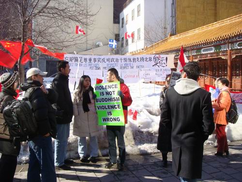 3月29日当地时间下午1时至4时,蒙特利尔华人自发组织了“反对藏独,支持祖国统一,支持北京奥运”活动,100多志愿者以唐人街中山公园为中心,向过往行人散发传单,同时进行宣传解释。本次活动的主题是“放下偏见,尊重事实,支持奥运,反对藏独。”参加活动的志愿者还专门准备了招贴画和大幅标语进行宣传。