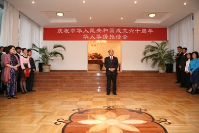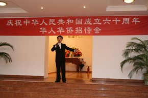 金风送爽,丹桂飘香。9月18日晚,中国驻白俄罗斯大使鲁桂成夫妇在使馆举行华人华侨招待会,热烈庆祝新中国成立60周年。旅白华人华侨、中资机构及留学生代表150余人出席。