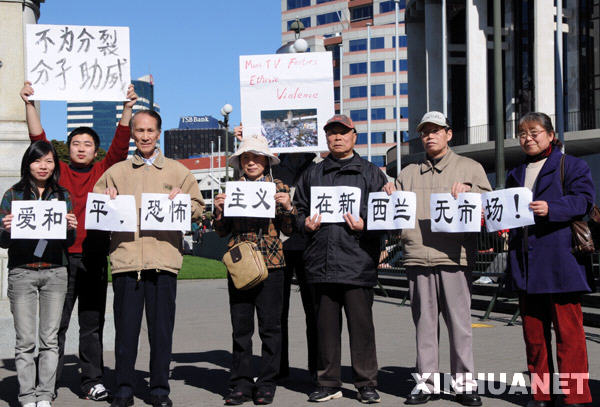 新华网惠灵顿8月21日电(记者 黄兴伟 刘洁秋)在新西兰的一些华侨华人21日自发来到位于首都惠灵顿的议会大厦广场,抗议新西兰毛利电视台决定在9月1日播放美化乌鲁木齐“7·5”事件幕后主谋、民族分裂分子热比娅的纪录片《爱的十个条件》。