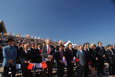 2009年9月6日,澳大利亚新南威尔士州华侨华人逾万人在悉尼歌剧院广场隆重集会,热烈庆祝中华人民共和国六十华诞。中国驻澳大利亚大使章均赛、驻悉尼总领事胡山、澳总理陆克文代表联邦议会多元文化事务次长劳理·弗格森(Laurie Ferguson)、新南威尔士州长内森·李斯(Nathan Rees)等应邀出席并致词。