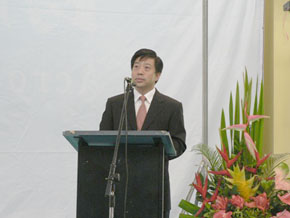 韩大使回顾了新中国60年取得的辉煌成就,表示这些成就源于中国共产党领导人民所进行的艰苦卓绝的努力,源于中国找到了一条符合本国国情的发展道路,也源于包括广大华侨华人在内的世界各地友好国家和人民的大力支持。感谢在斐华侨华人为祖国发展做出的贡献。