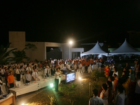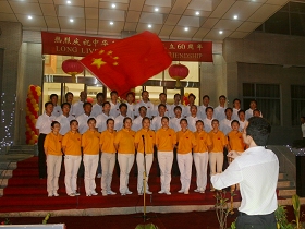 演出结束前,全场人员高唱《歌唱祖国》,群情激越,歌声嘹亮!中资企业员工和华人华侨纷纷表示,尽管远离祖国和亲人,但一颗赤诚之心时时刻刻都与祖国母亲在一起,决心以更大的干劲、更扎实的工作、更优异的成绩向伟大祖国60华诞献礼!