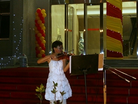 演出在雄壮的国歌声中拉开序幕,于文哲大使在开幕致辞中表示,六十载风雨兼程,祖国发生了翻天覆地的变化,取得了举世瞩目的成就,每位炎黄子孙感到无比自豪。于大使感谢广大中资企业和华人华侨为祖国各领域建设和促进中加两国友谊做出的贡献,希望他们团结互助,再接再厉,展现祖国在政治上的影响力,经济上的竞争力,形象上的亲和力和道义上的感召力,共同树立中国、中资企业和中国人的良好形象。于大使代表全体旅加中国人,在祖国60华诞之际,祝愿伟大祖国兴旺昌盛,繁荣富强!